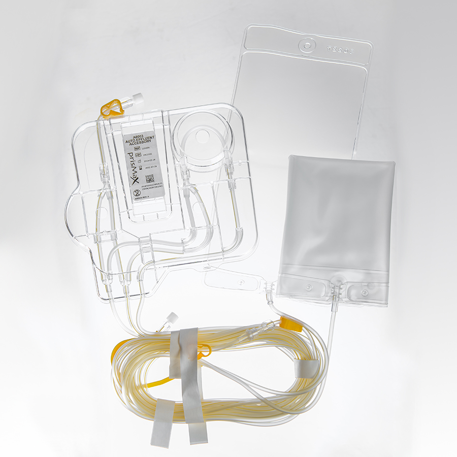 - Tillbehöret för automatiskt avflöde är en krets för engångsbruk med PrisMax-maskinen i kombination med andra Prismaflex- eller PrisMax-set för engångsbruk.