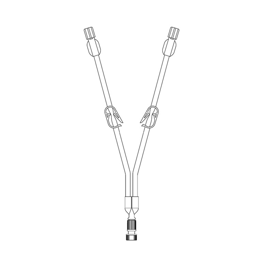 Y-koppling med luerlockanslutningar. Kan användas vid enkelnålsbehandling i hemodialys.